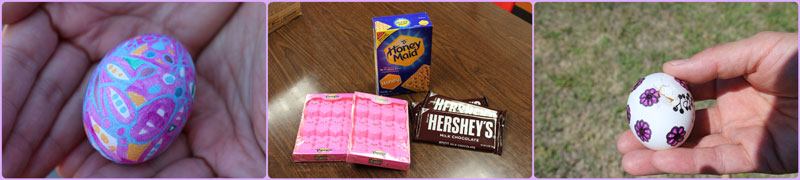We decorated eggs with Sharpies, ate Peeps S’mores and played egg games!