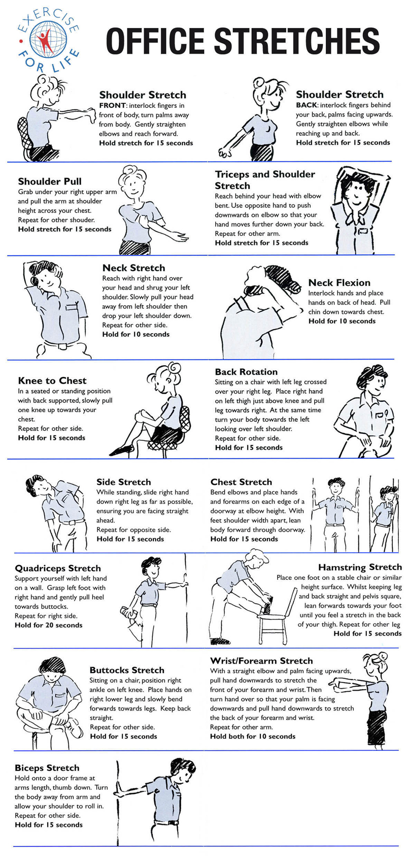 Keep key objects such as your telephone, stapler or printed materials, close to your body to prevent excessive stretching.