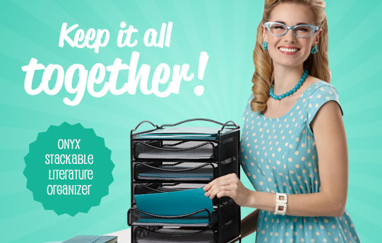 safco literature organizer Are you detecting a theme this spring? It’s all about clean! Get rid of the clutter; get back the control. With Onyx Stackable Literature Organizer, you can keep handy what you need when you need it, in a tidy, organized space. Just label the sleek mesh as needed, and you’ll know where to put the things you rely on most… invoices, incoming & outgoing mail, frequently used files, and more! And if five spaces aren’t enough, just stack another organizer on top with easy-to-use connector clips for a total of 10 compartments. Either way, you can keep your “inbox” on top for easy access. The steel mesh construction and deep compartments provide a stylish, sturdy, and reliable organizer to get that clutter off the desk and in the place they belong. Now, sort, smile and exhale for a whole new organized you!