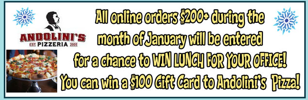 This month our premium gift is a Kate Spade Thermal mug in assorted colors. As always this is while supplies last, so get your orders in quick! All orders placed online this month exceeding $200 will be entered to win a $100 gift card to Andolini’s Pizzeria!