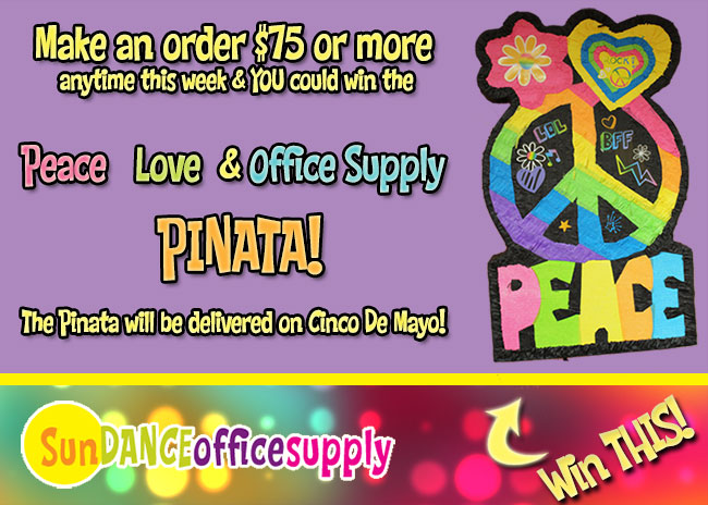 The team at SunDANCE is ready to celebrate Cinco De Mayo! If you place and order this week of $75 or more you will be entered to win our Peace, Love, and Office Supply Pinata filled with candy. Cinco de Mayo commemorates the Mexican army’s 1862 victory over France during the Franco-Mexican War. In the United States Cinco de Mayo has evolved into a celebration of Mexican culture and heritage, If you would like to learn more just click here!