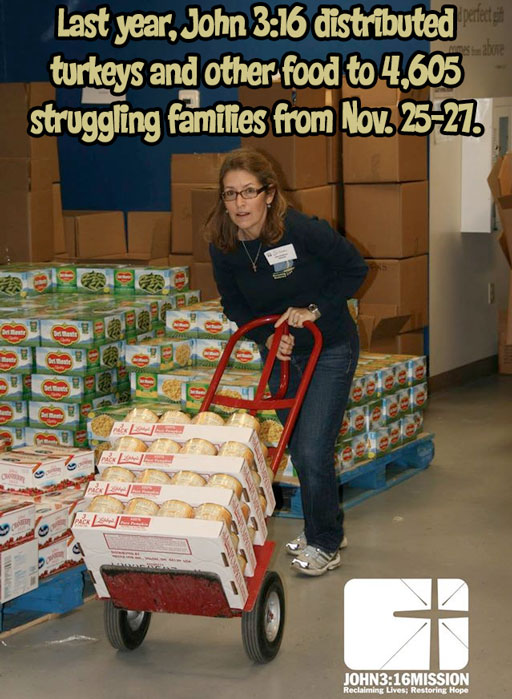 In addition to many other services, John 3:16’s first mission is to provide food. They aim to provide hope to the hungry. They distribute food baskets monthly, operate a food pantry once a month, provide thousands of Thanksgiving food baskets, and provide a Thanksgiving banquet. The mission serves hundreds of meals on a daily basis, as well.
